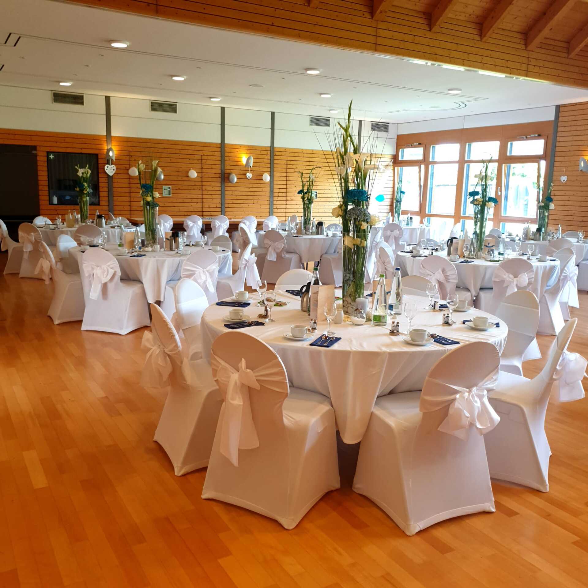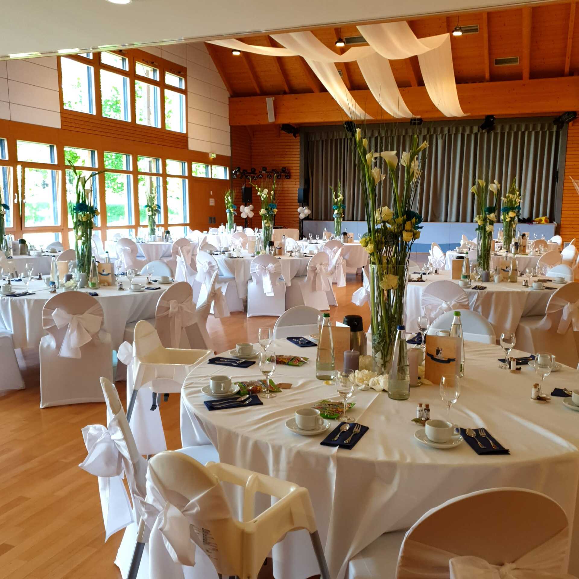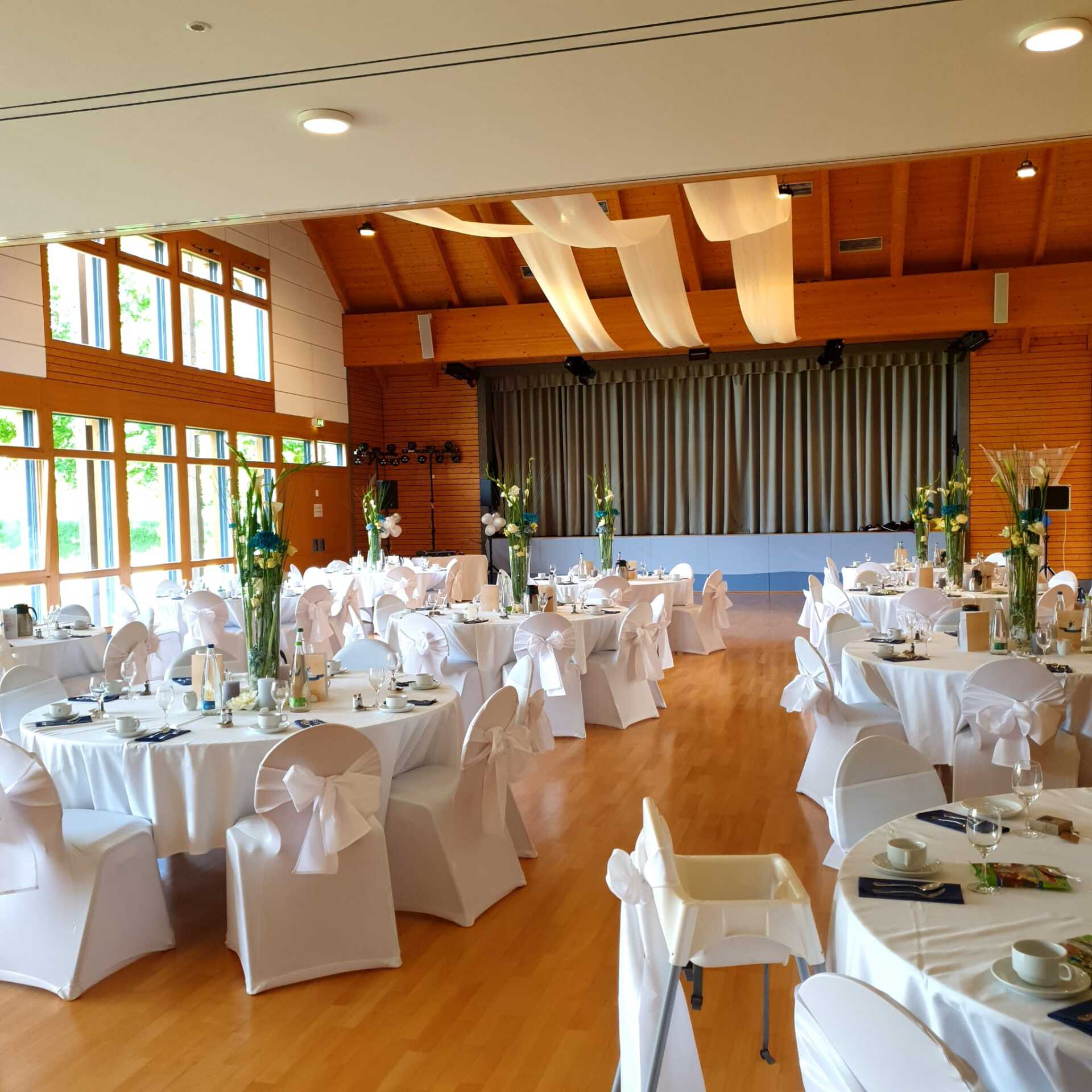 Unsere engagierten Mitarbeiter dekorieren Ihre Räumlichkeiten im gewünschten Stil. Wählen Sie eine unserer Locations oder nutzen Sie eine eigene Halle.